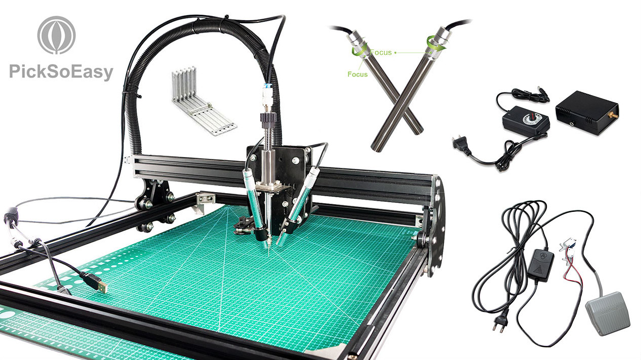 Then I discovered the PickSoEasy PSE-20-USB-2M, a machine with two smoothly moving axes, a rotatable vacuum pickup tool, and two USB cameras. For 567 euros, it seemed almost too good to be true. Slightly afraid but determined, I went ahead with the purchase.